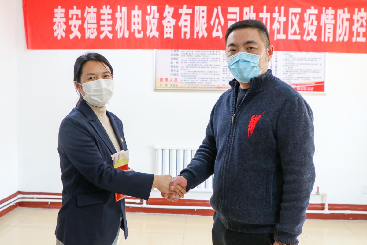 在疫情防控關(guān)鍵時期,泰安德美機電設(shè)備有限公司作為泰安國際商會副會長單位、泰山區(qū)政協(xié)委員獻出愛心,通過市貿(mào)促會、區(qū)貿(mào)促會牽線搭橋,為鐵路新村捐贈防疫物資,