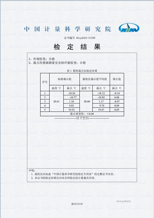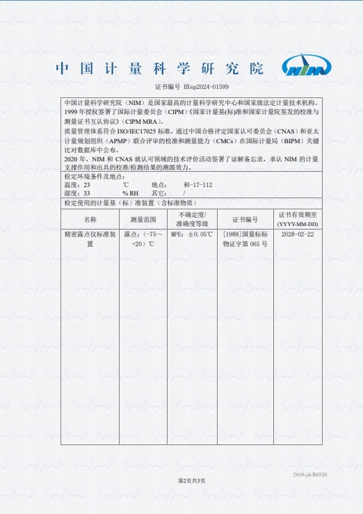 冷鏡式露點儀(-20-95℃)檢定證書 2024-6-17 本文被閱讀 7646 次