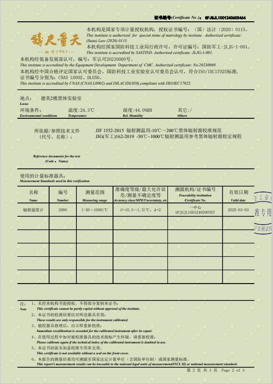 黑體輻射源(50-700℃)304所校準證書 2024-6-18 本文被閱讀 7518 次