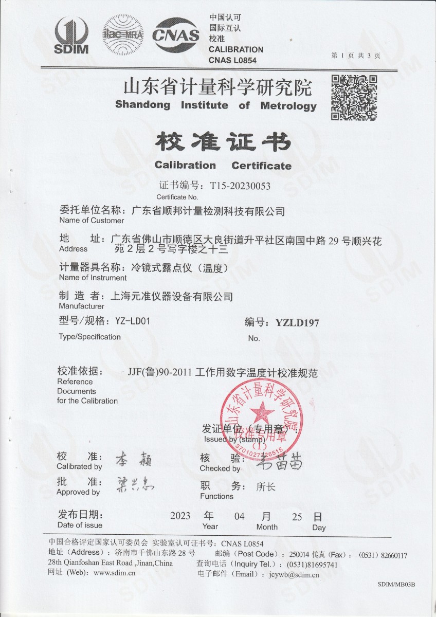 | 上一條:廣東省順邦計量檢測科技有限公司 冷鏡式露點儀 檢定證書 | 下一條:DY-HT1-G創(chuàng)新型防結霜低溫黑體爐(-30℃~80℃) |