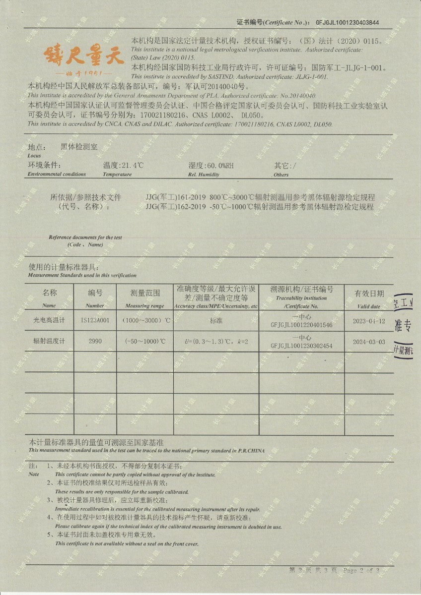 | 上一條:晶科能源(義烏)有限公司 溫濕度檢定箱 校準(zhǔn)證書 | 下一條:濕度發(fā)生器-校準(zhǔn)證書 |