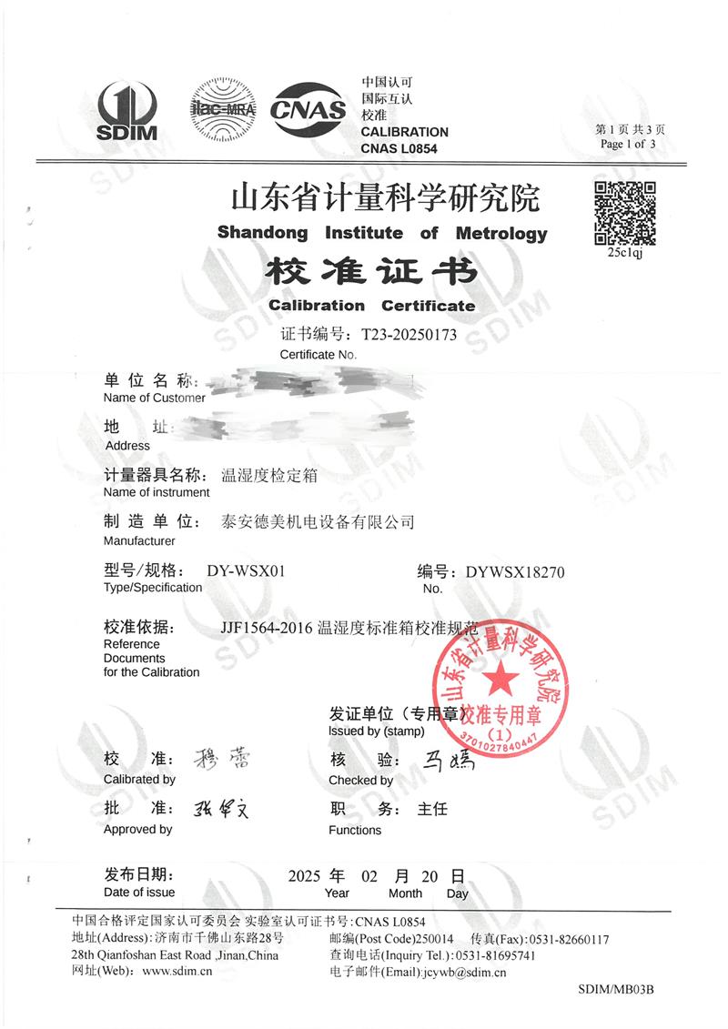 溫濕度檢定箱(-5~65℃)校準(zhǔn)證書 2025-2-26 本文被閱讀 5766 次