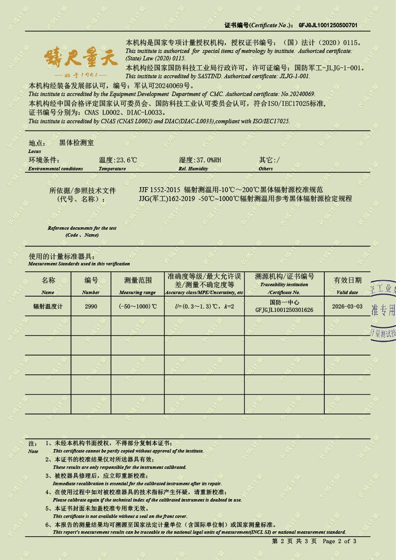 差分黑體爐(0-100℃)校準證書 2025-5-9 本文被閱讀 4285 次