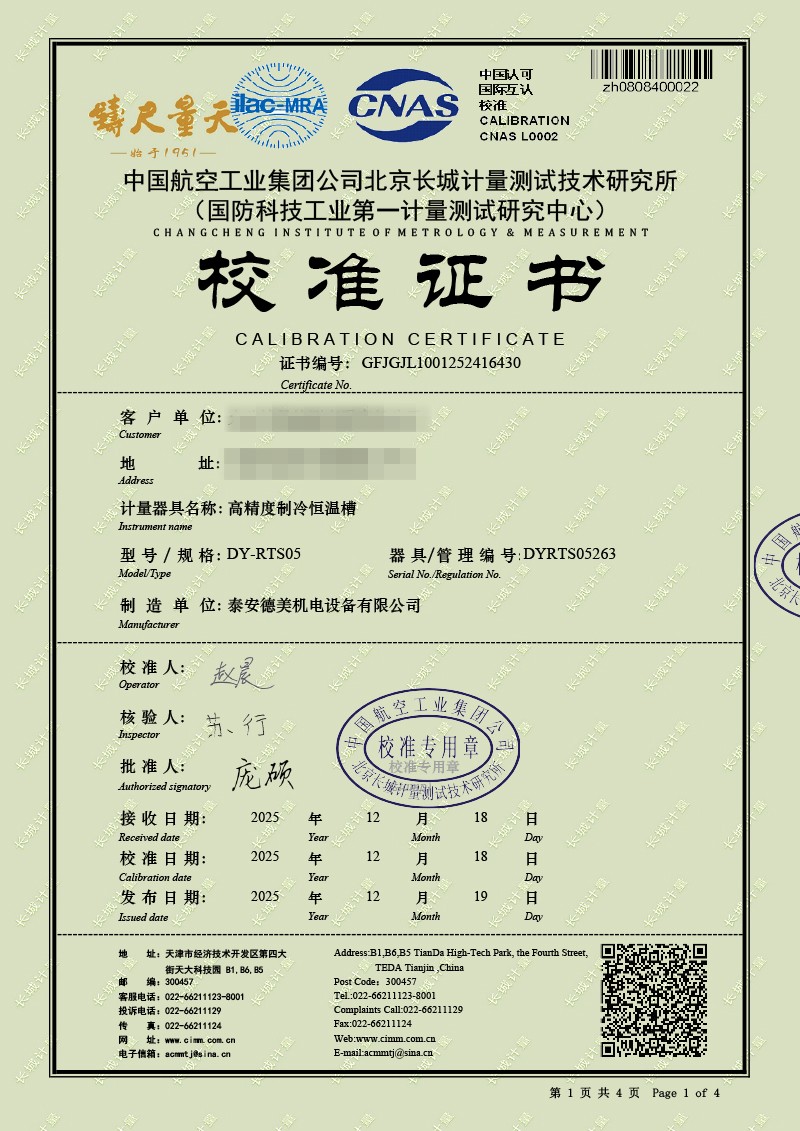 高精度制冷恒溫槽(0~100℃)-校準(zhǔn)證書 2025-12-19 本文被閱讀 1261 次