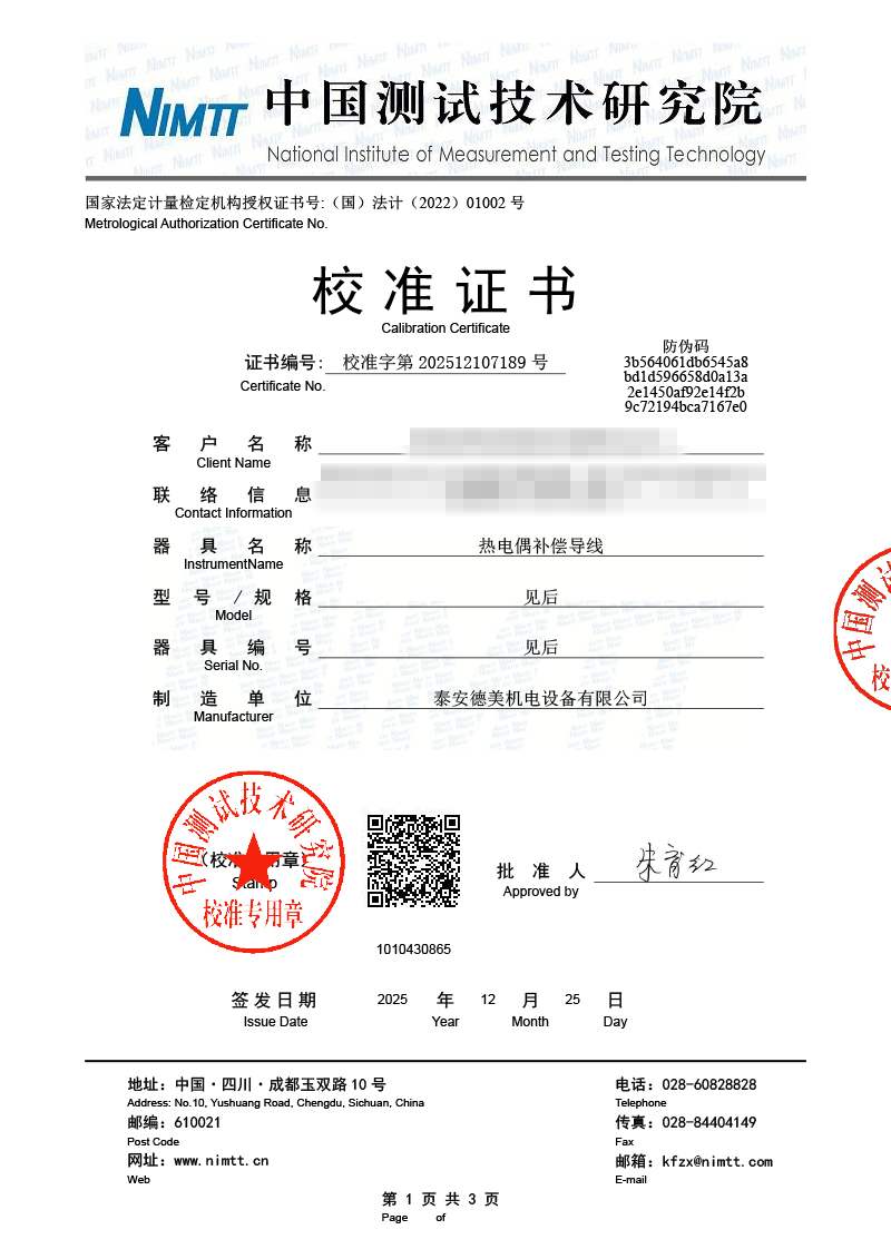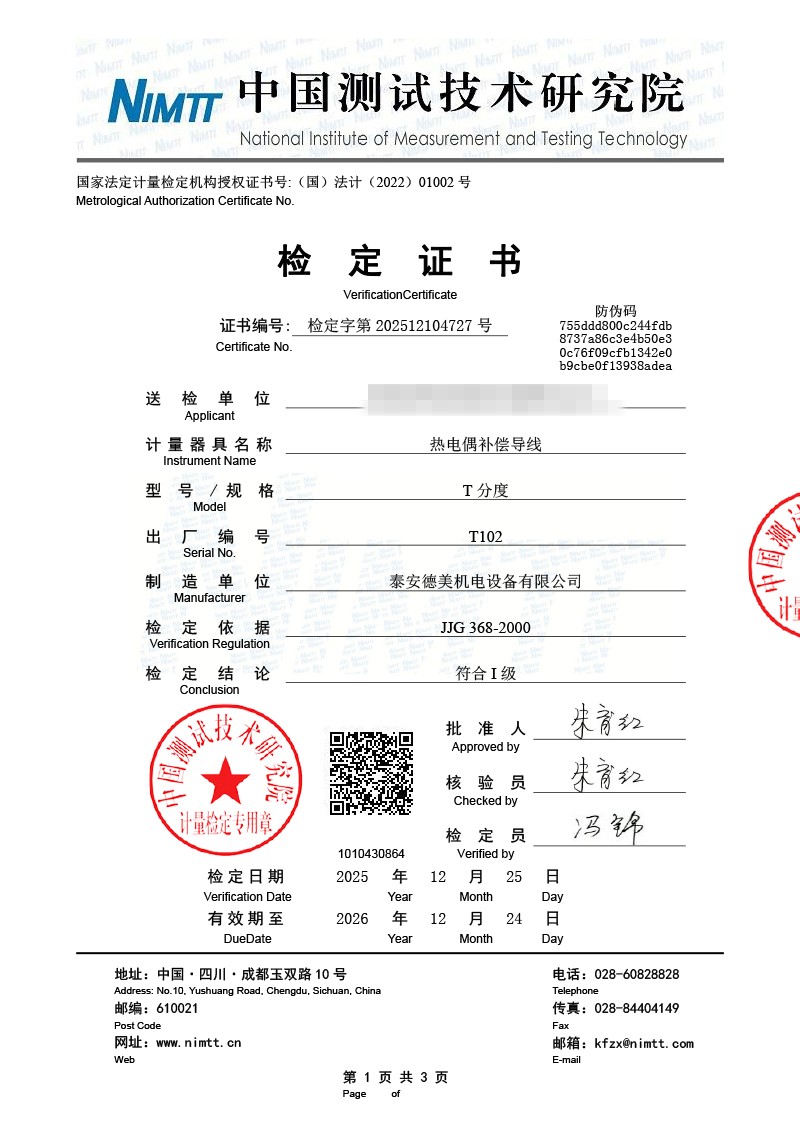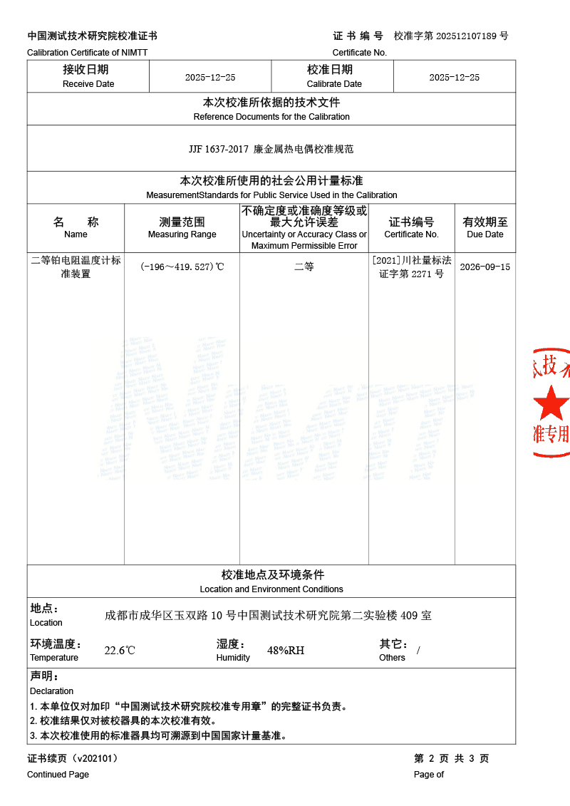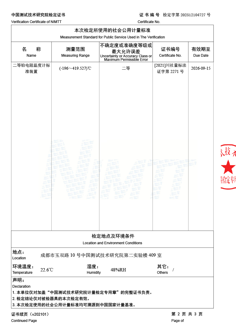 | 上一條:標(biāo)準(zhǔn)水銀溫度計(jì)檢定證書 | 下一條:低溫干體爐-校準(zhǔn)證書 |