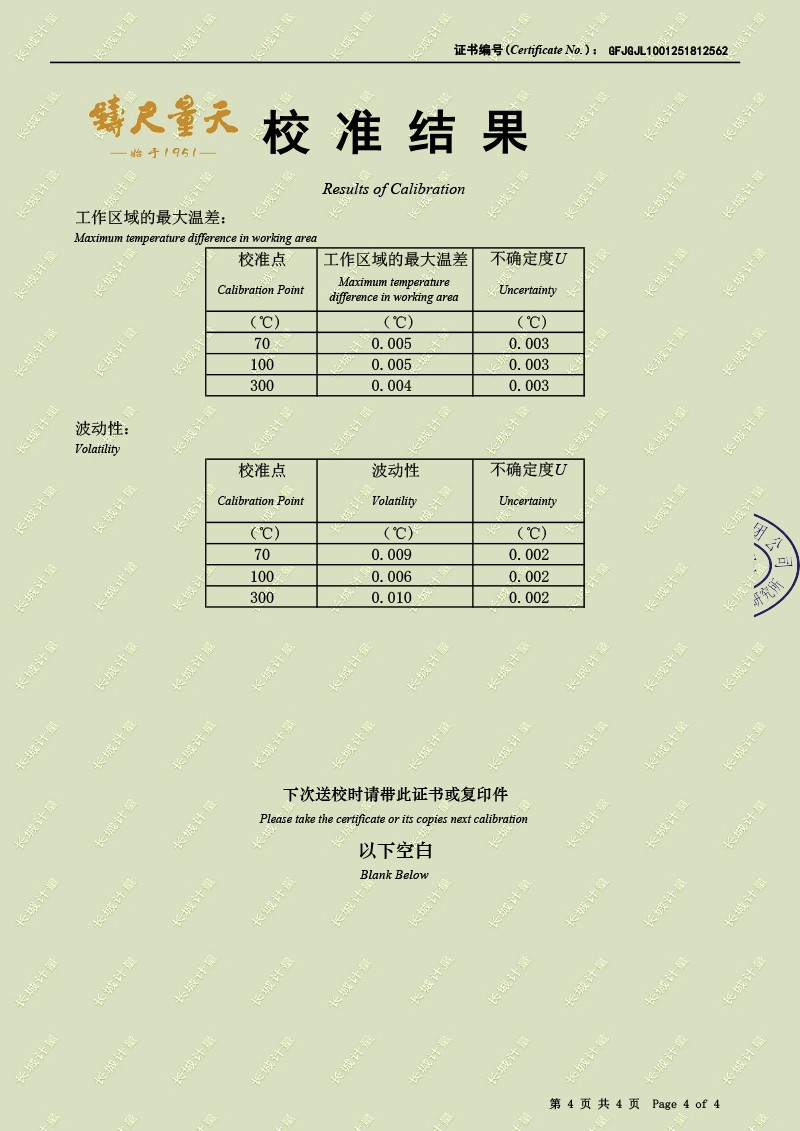 高精度恒溫油槽(70-300℃)校準證書 2025-6-25 本文被閱讀 4253 次