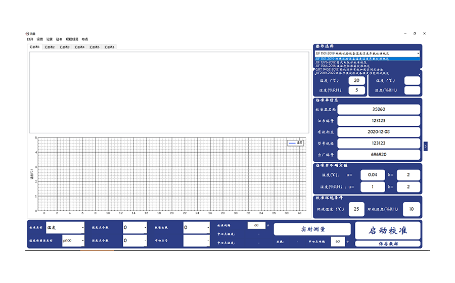 4)根據(jù)數(shù)據(jù)表格中的數(shù)據(jù),生成相對應(yīng)的記錄表信息跟證書信息??缮蓪?shí)時(shí)曲線。