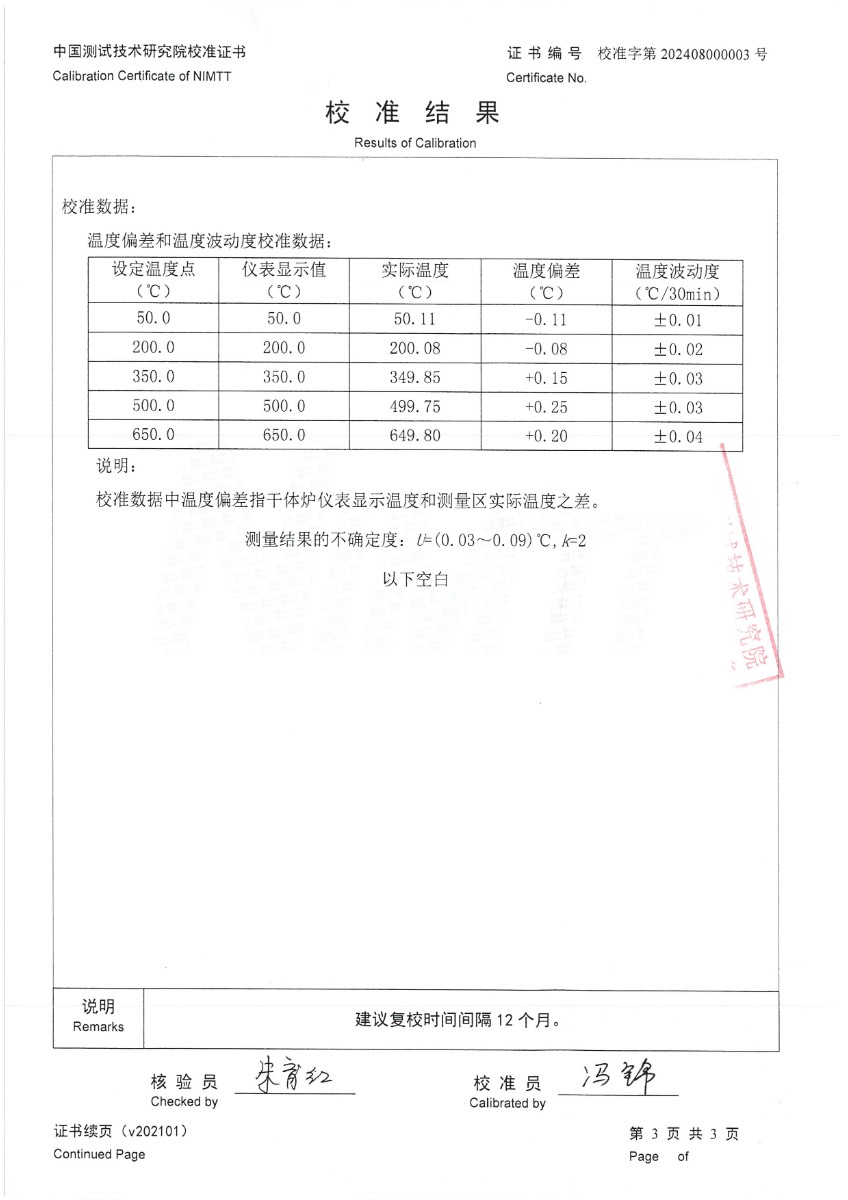 | 上一條:干體爐299(室溫+5℃~650℃)校準(zhǔn)證書 | 下一條:濕度發(fā)生器-校準(zhǔn)證書 |