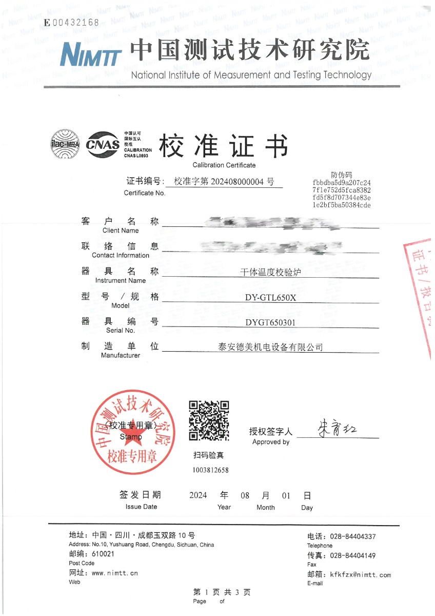 干體爐301(室溫+5℃~650℃)校準證書 2024-8-5 本文被閱讀 7918 次