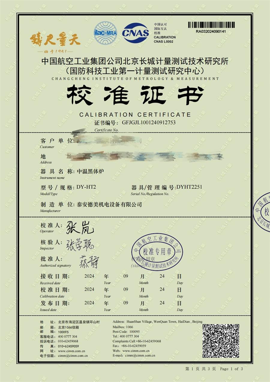 | 上一條:高溫黑體爐(300-1200℃)校準(zhǔn)證書 | 下一條:DY-HT2M-C高溫面源黑體爐(100mm) |