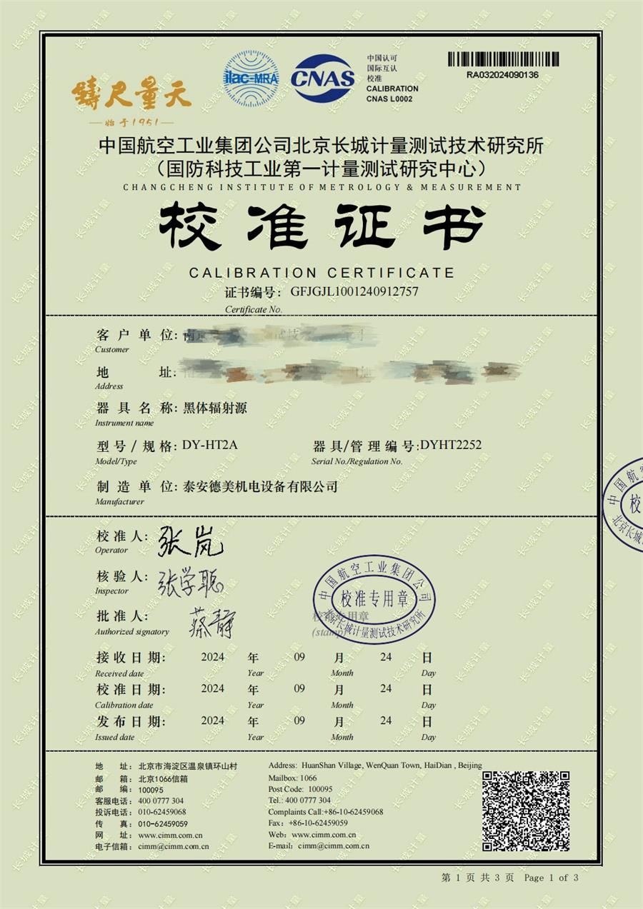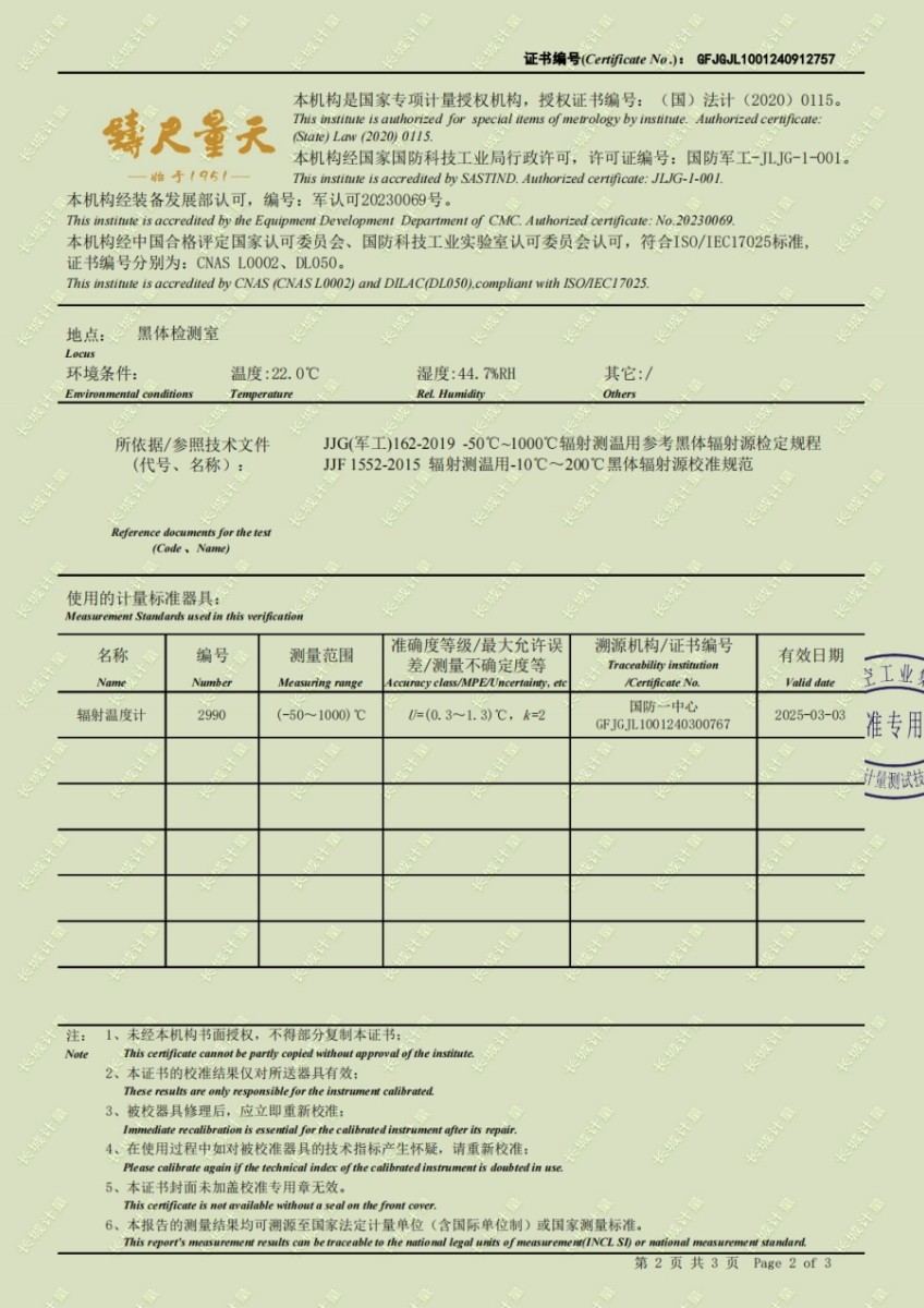 黑體輻射源(50-700℃)校準證書 2024-10-17 本文被閱讀 6520 次