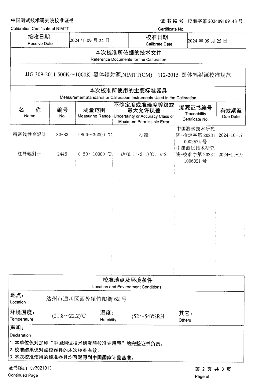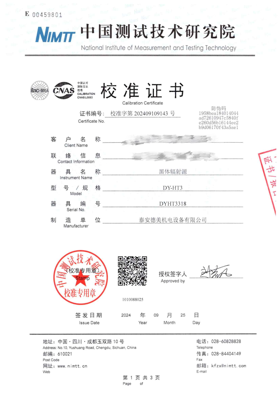 高溫腔式黑體校準(zhǔn)證書 2024-10-21 本文被閱讀 7970 次