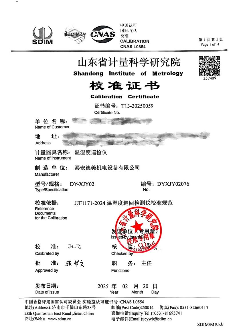 溫濕度巡檢儀校準證書 2025-2-22 本文被閱讀 5548 次