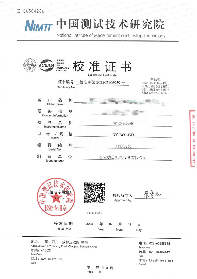 零點恒溫器校準證書 2025-3-12 本文被閱讀 3952 次