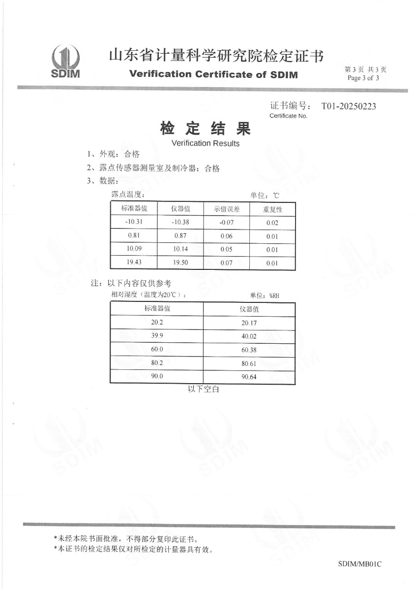 露點儀檢定、校準證書 2025-12-4 本文被閱讀 1680 次