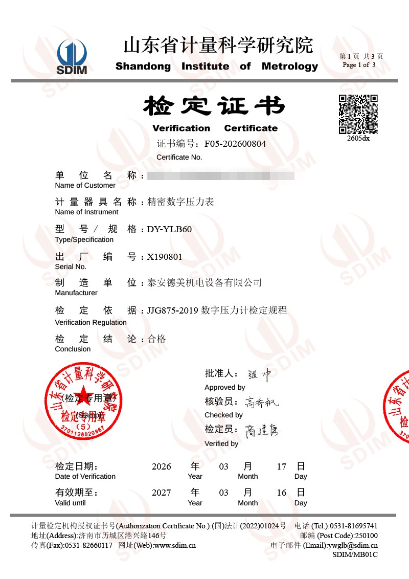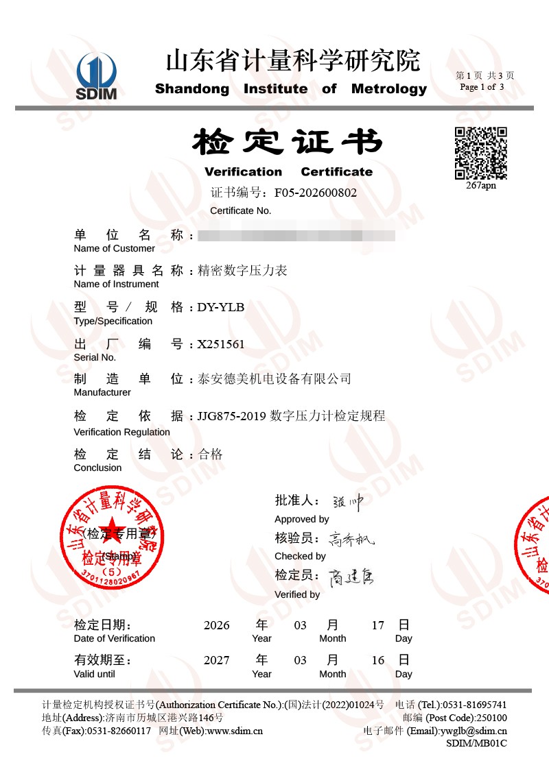 數(shù)字壓力表-校準(zhǔn)證書 2026-3-25 本文被閱讀 165 次