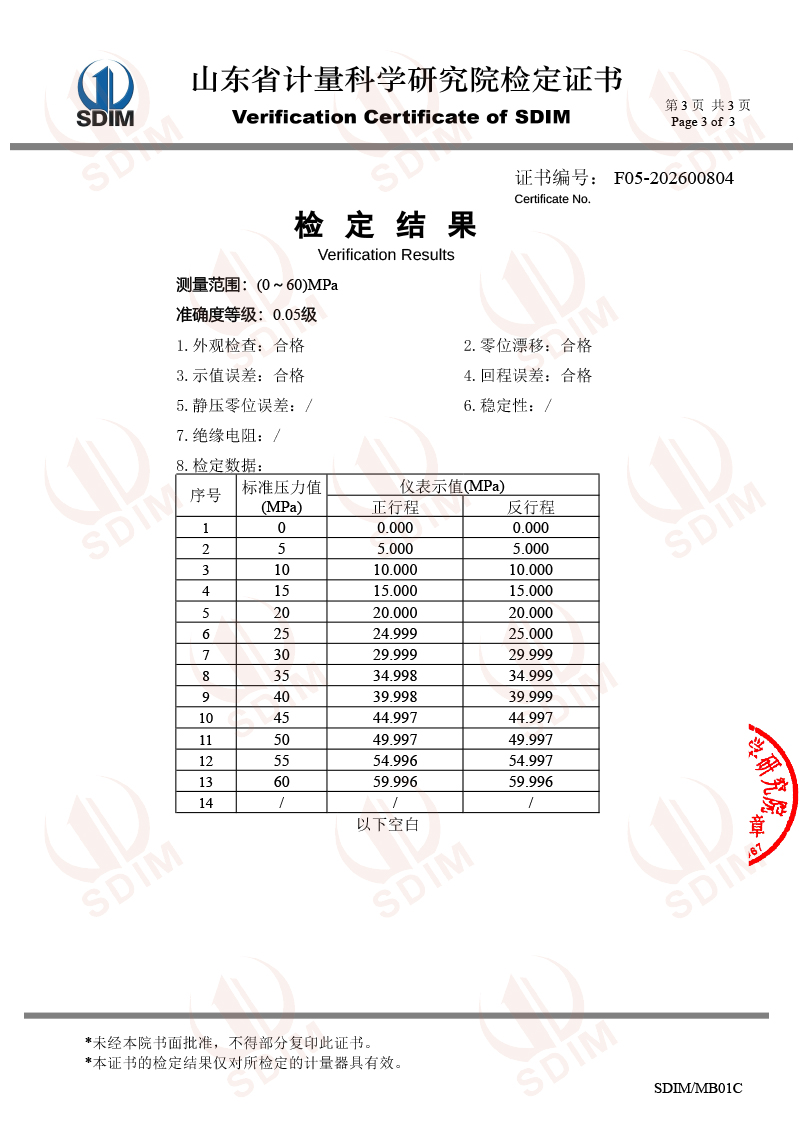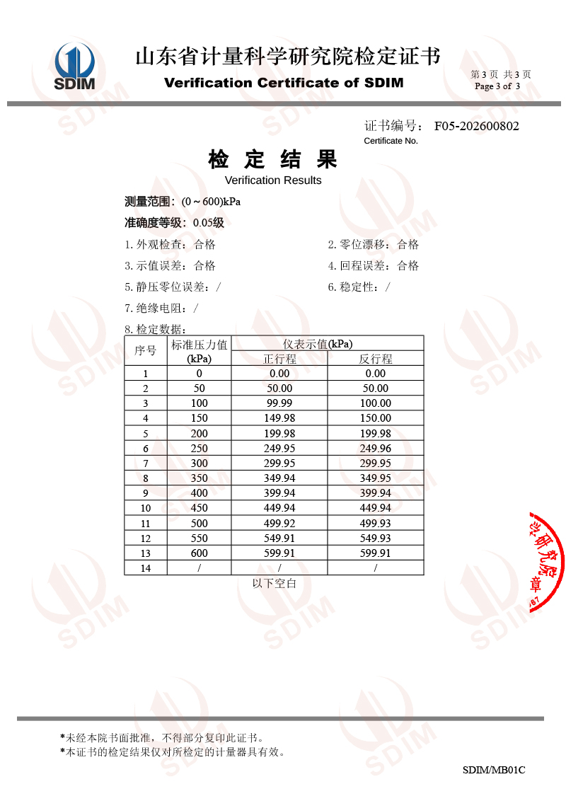 數(shù)字壓力表-校準(zhǔn)證書