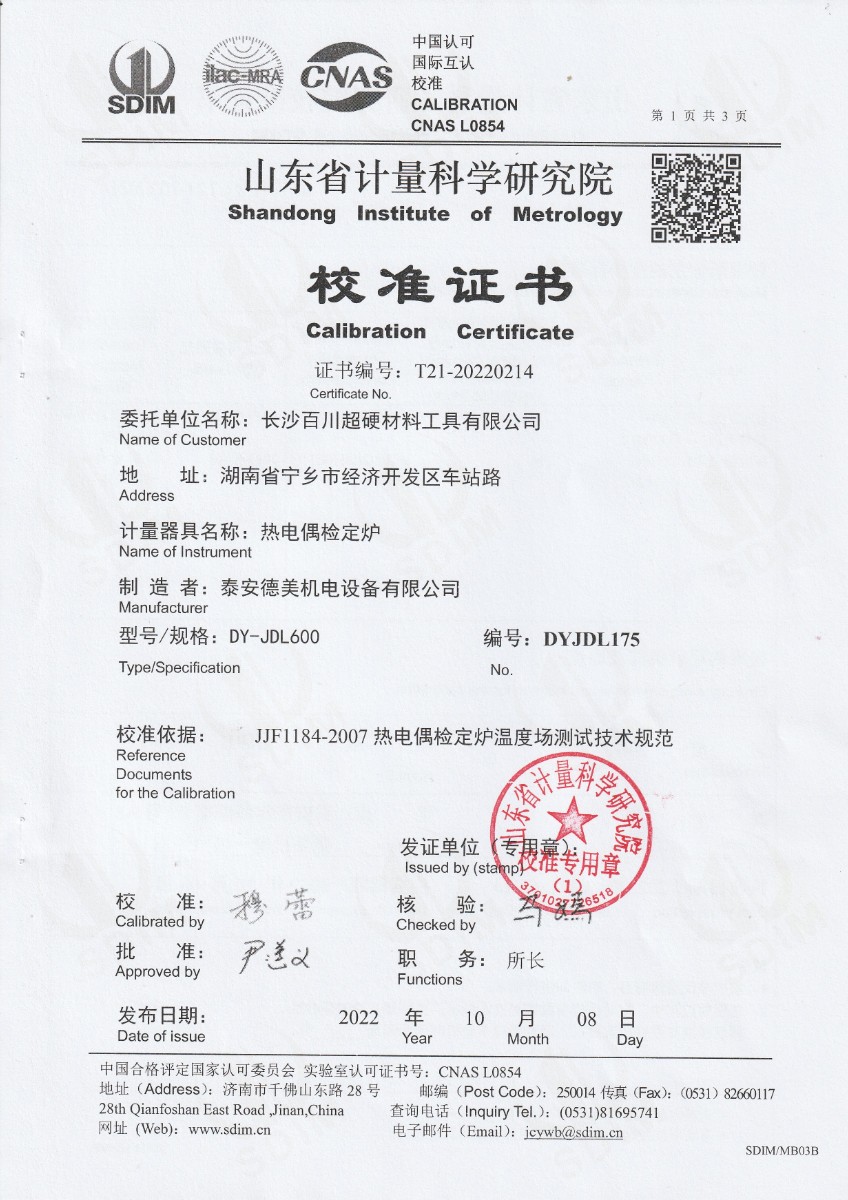長沙百川超硬材料工具有限公司-熱電偶檢定爐 2022-11-9 本文被閱讀 14091 次