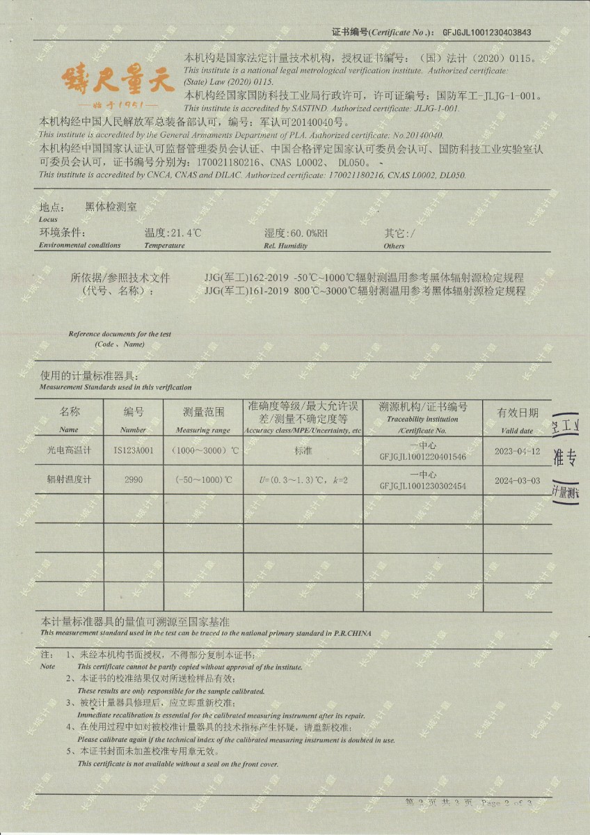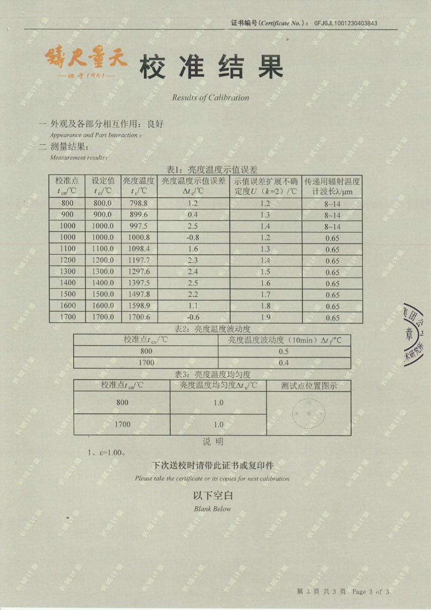 無錫英菲感知技術有限公司 高溫黑體 校準證書(1) 2023-5-4 本文被閱讀 12364 次