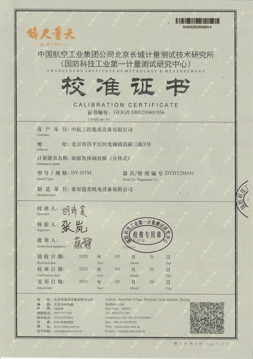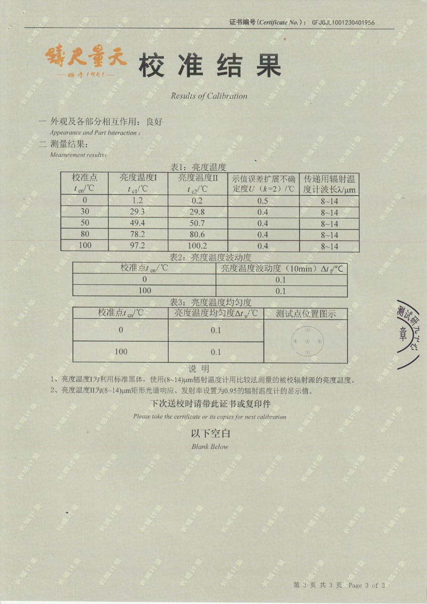 | 上一條:中航工程集成設(shè)備有限公司 黑體輻射源 校準(zhǔn)證書(shū) (2) | 下一條:DY-HT2M-C高溫面源黑體爐(100mm) |