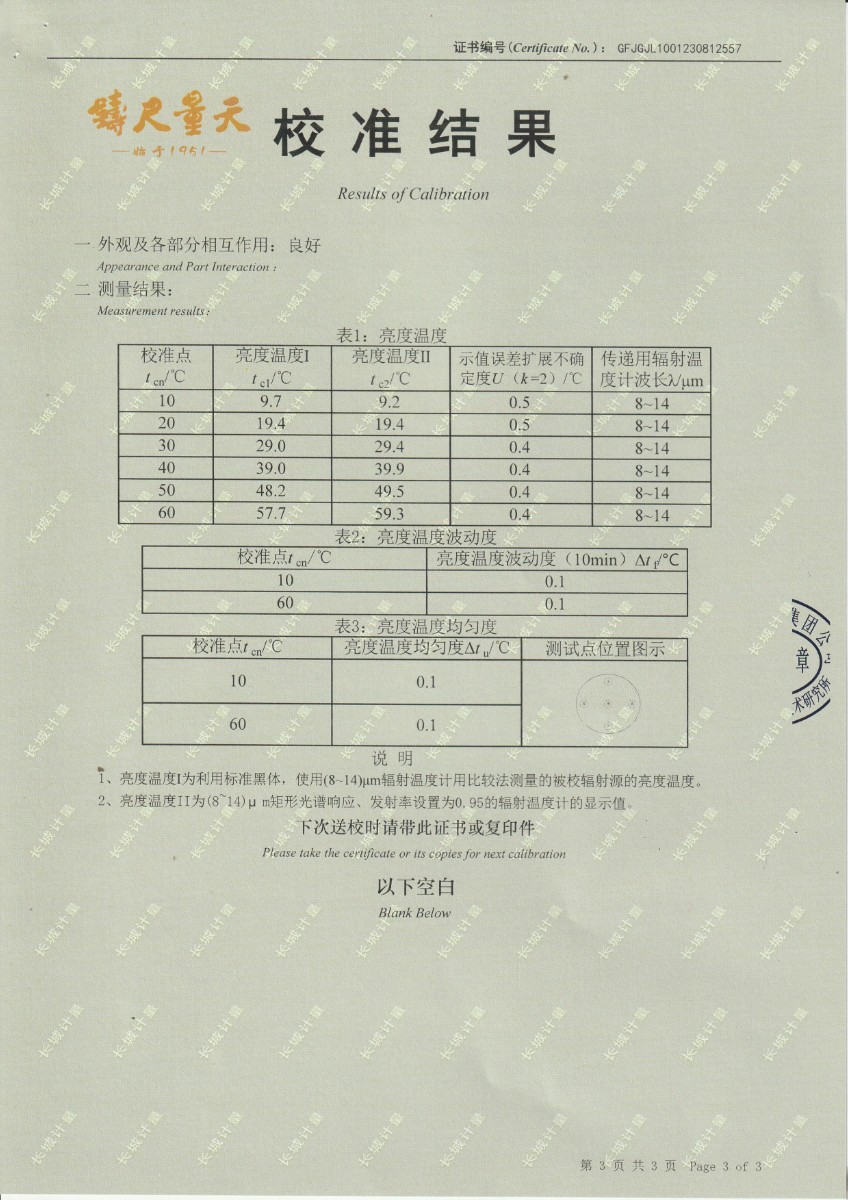 面源黑體爐DYHT1M141校準(zhǔn)證書(shū) 2023-9-20 本文被閱讀 9792 次