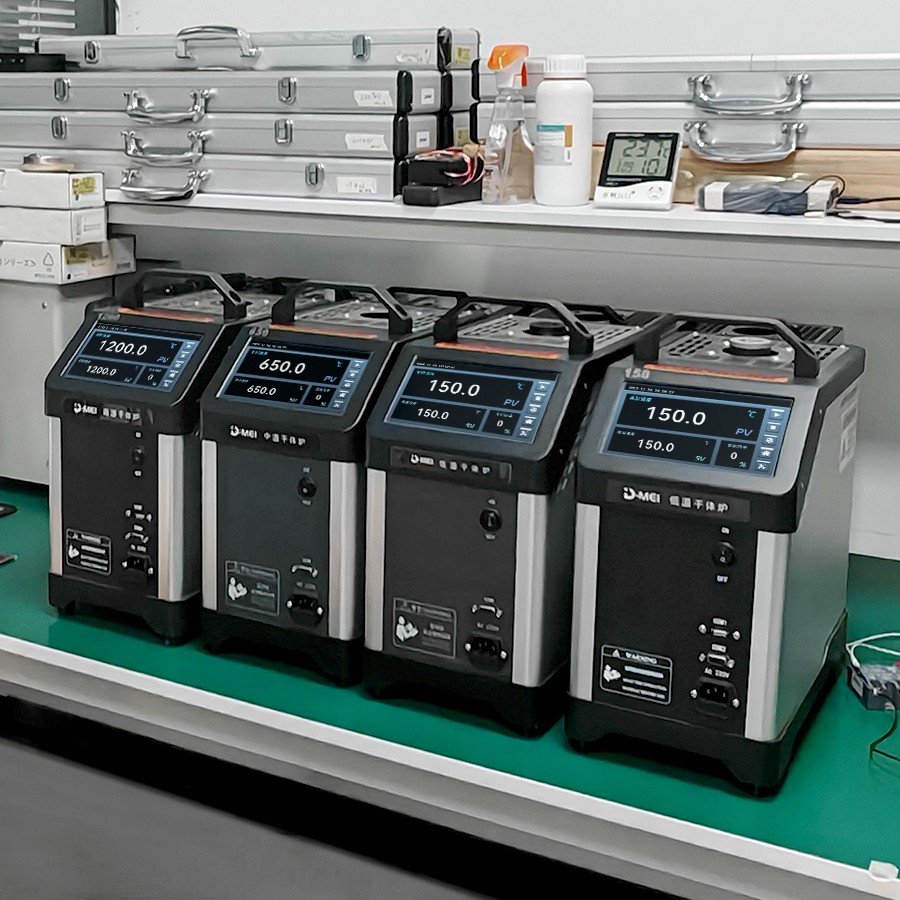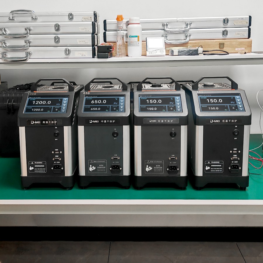 干體爐能夠提供一個穩(wěn) 定的、均勻的、準確的溫度環(huán)境(溫場),提供了類似于恒溫槽(液浴槽)的性能,但是干體爐卻攜帶方便,不需要放置液體。干體爐到達預定溫度點并且溫度穩(wěn) 定的時間比恒溫槽快5到10倍,這樣可以大大節(jié)省校準人員的時間,提高溫度檢定速度。干體爐的便攜性使其能夠到現(xiàn)場進行校準工作,從而解決了恒溫槽在運輸移動上的困難。 通過干體爐可以方便地校準溫度傳感器、水銀溫度計、膨脹式溫度計、熱電偶、熱電阻、等溫度傳感器。