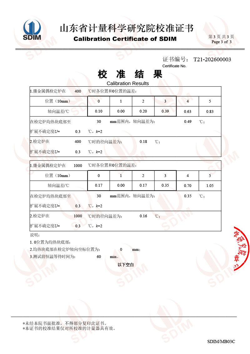 熱電偶檢定爐-校準(zhǔn)證書