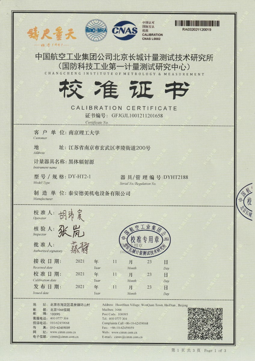 | 上一條:南京理工大學(xué)-黑體輻射源校準(zhǔn)證書(shū)-30-20℃ | 下一條:面源黑體爐-校準(zhǔn)證書(shū) |