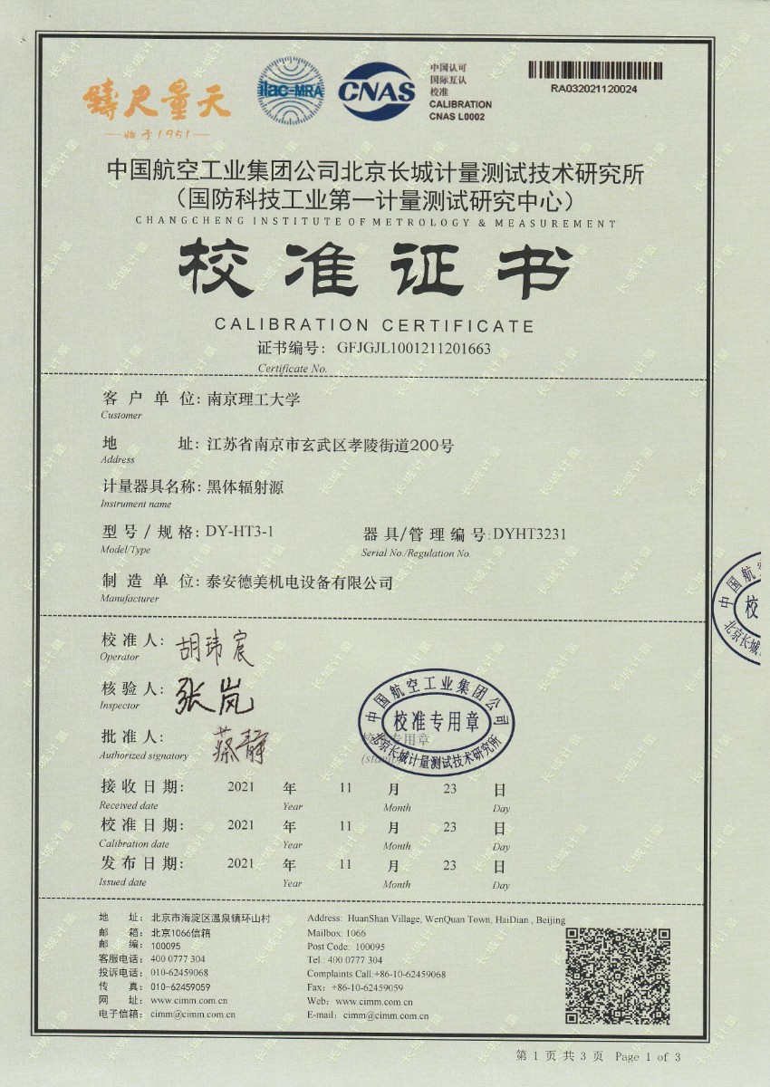 | 上一條:南京理工大學(xué)-黑體輻射源校準(zhǔn)證書350-800℃ | 下一條:DY-HT1-G創(chuàng)新型防結(jié)霜低溫黑體爐(-30℃~80℃) |