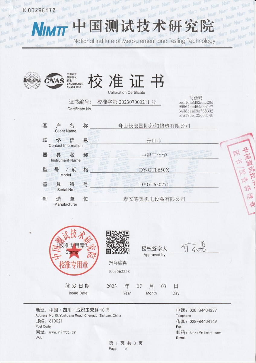 舟山長宏國際船舶修造有限公司-中溫干體爐 2023-7-13 本文被閱讀 13170 次