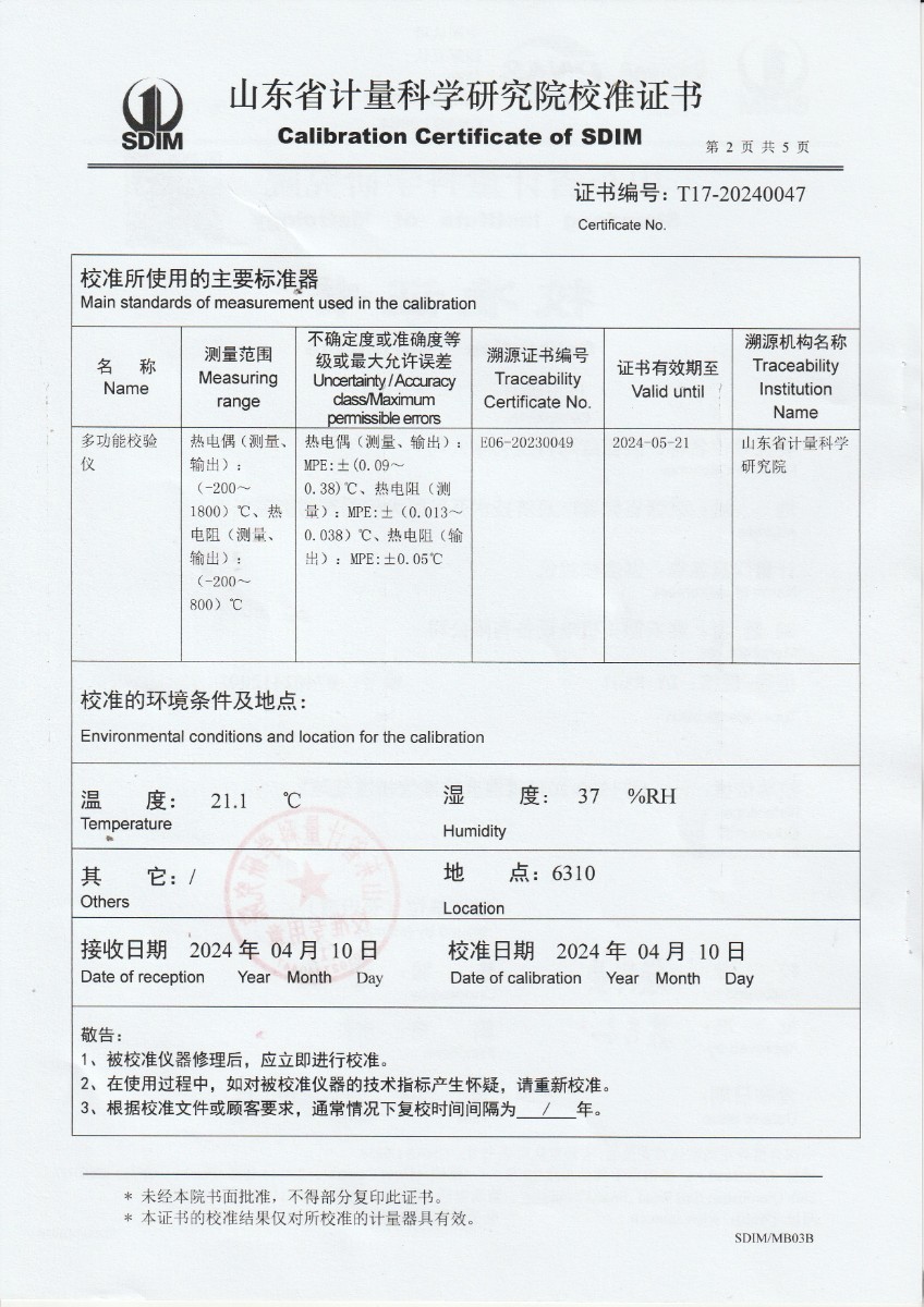 溫度校驗儀校準(zhǔn)證書 2024-4-12 本文被閱讀 7378 次