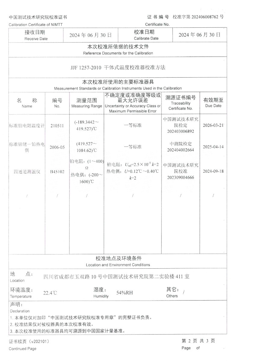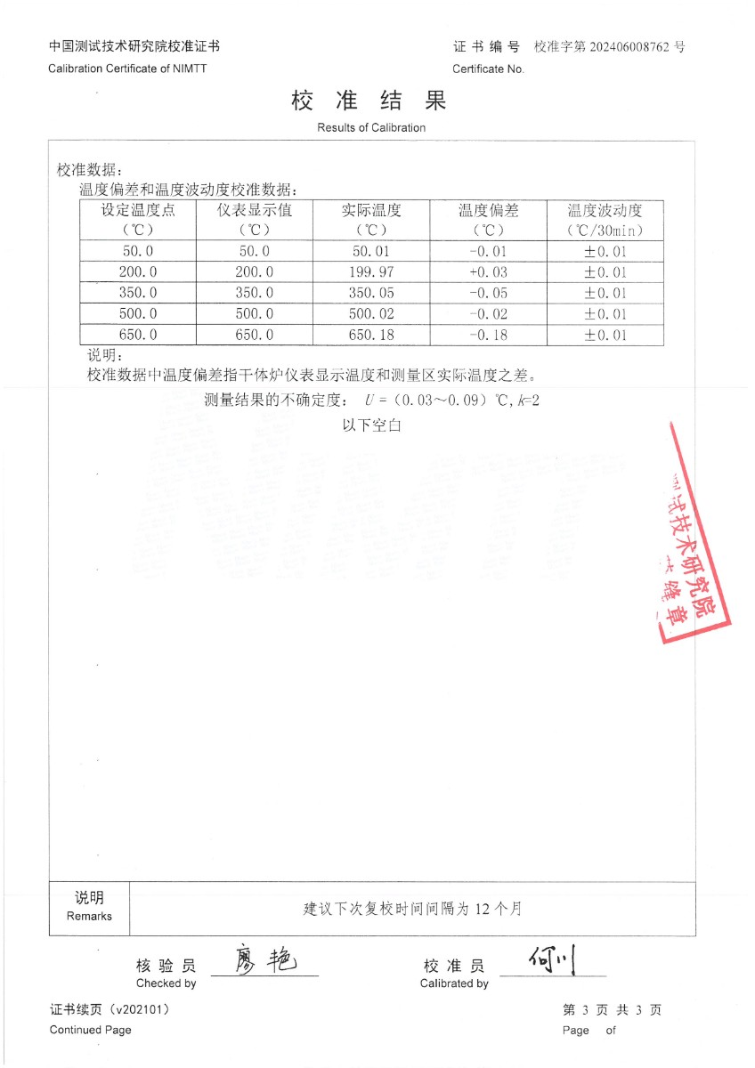中溫干體爐296(50~650℃)校準證書 2024-7-6 本文被閱讀 7043 次