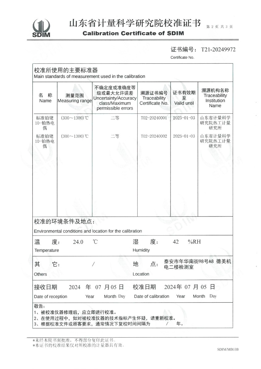 熱電偶檢定爐(300~1200℃)校準(zhǔn)證書 2024-7-11 本文被閱讀 7257 次