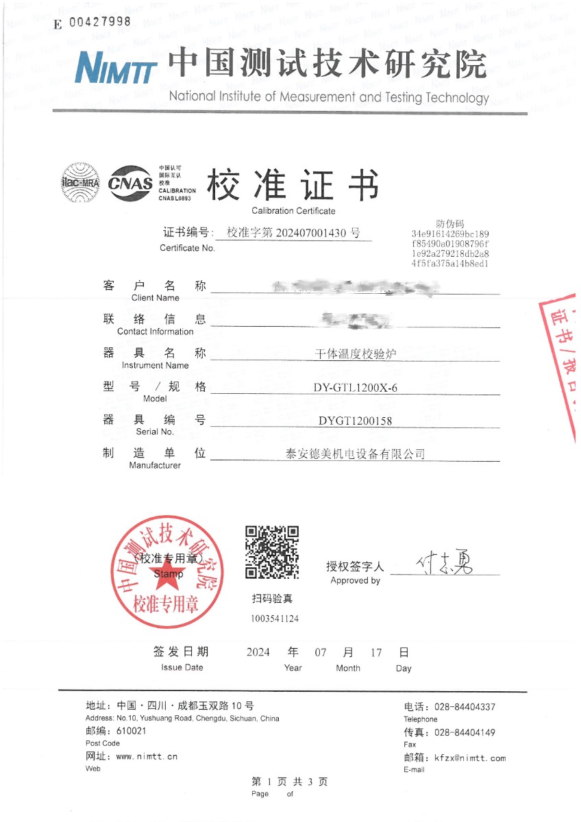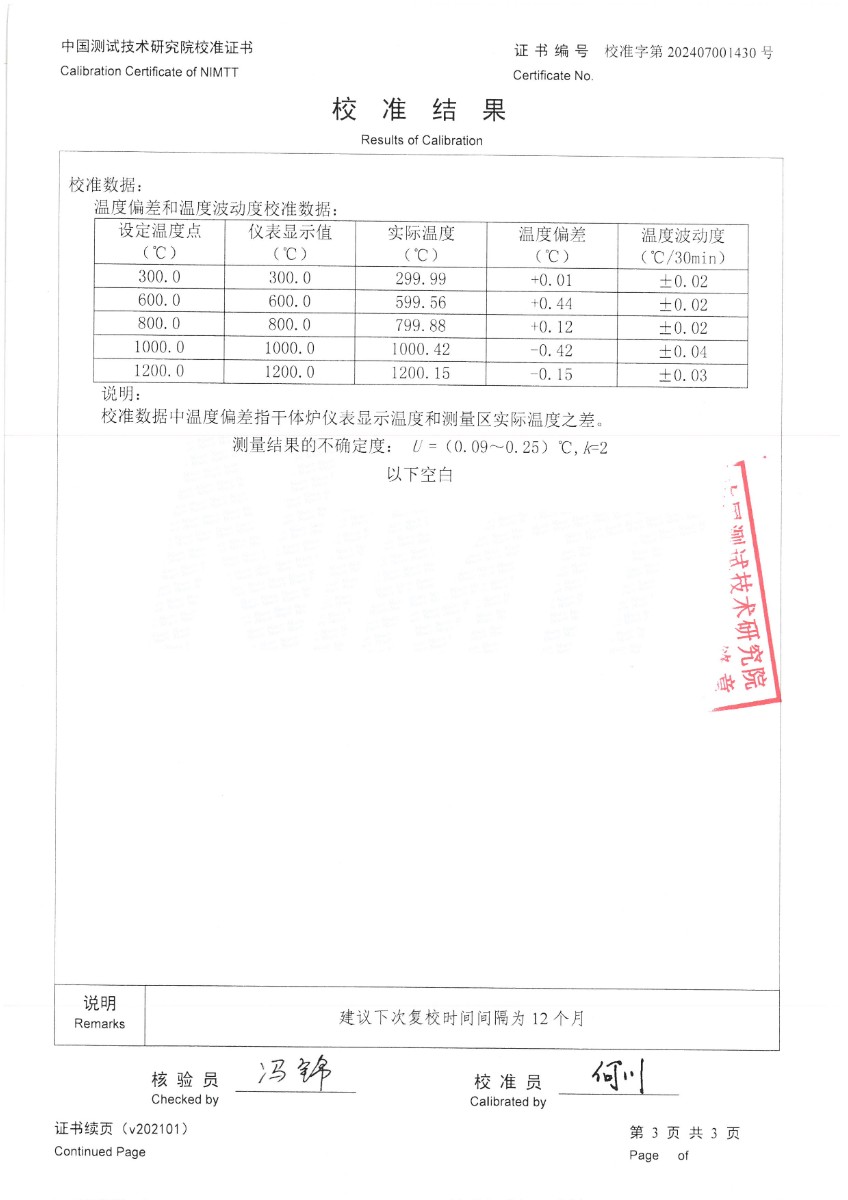| 上一條:熱電偶檢定爐(300~1200℃)校準(zhǔn)證書 | 下一條:DY-HT2M-C高溫面源黑體爐(100mm) |