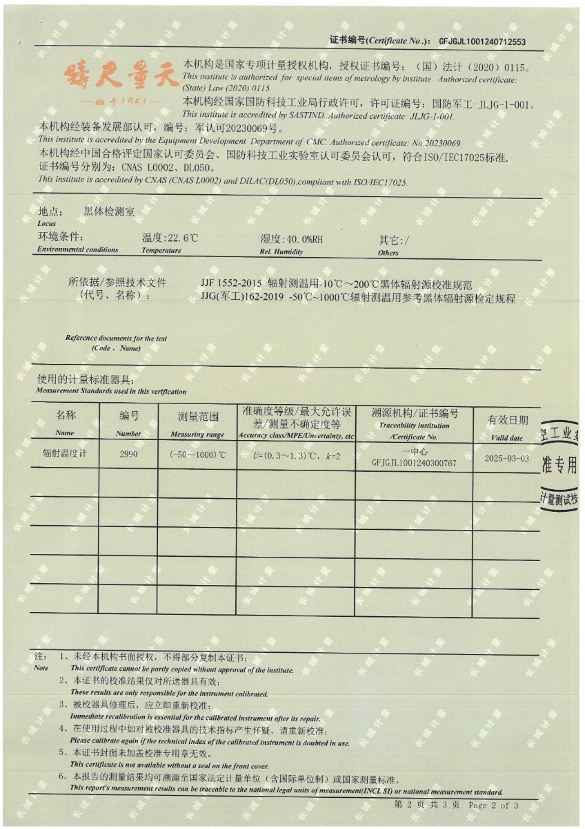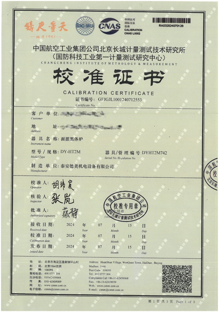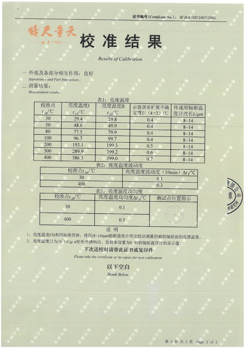 面源黑體爐(室溫+5℃~400℃)校準(zhǔn)證書 2024-7-29 本文被閱讀 8205 次