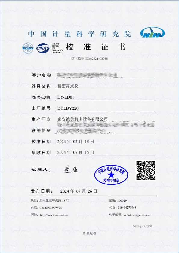 露點(diǎn)儀校準(zhǔn)證書 2024-7-29 本文被閱讀 8619 次