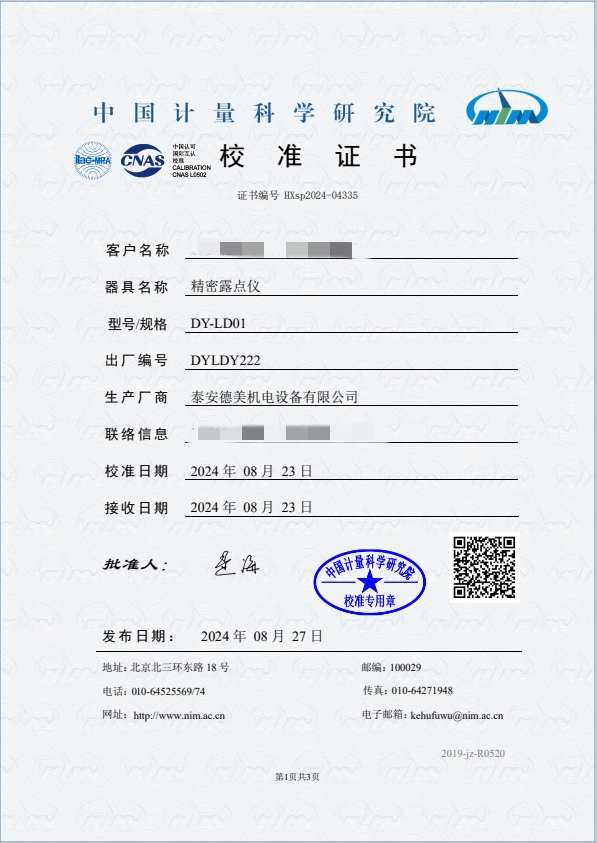 露點(diǎn)儀校準(zhǔn)證書 2024-9-3 本文被閱讀 8443 次