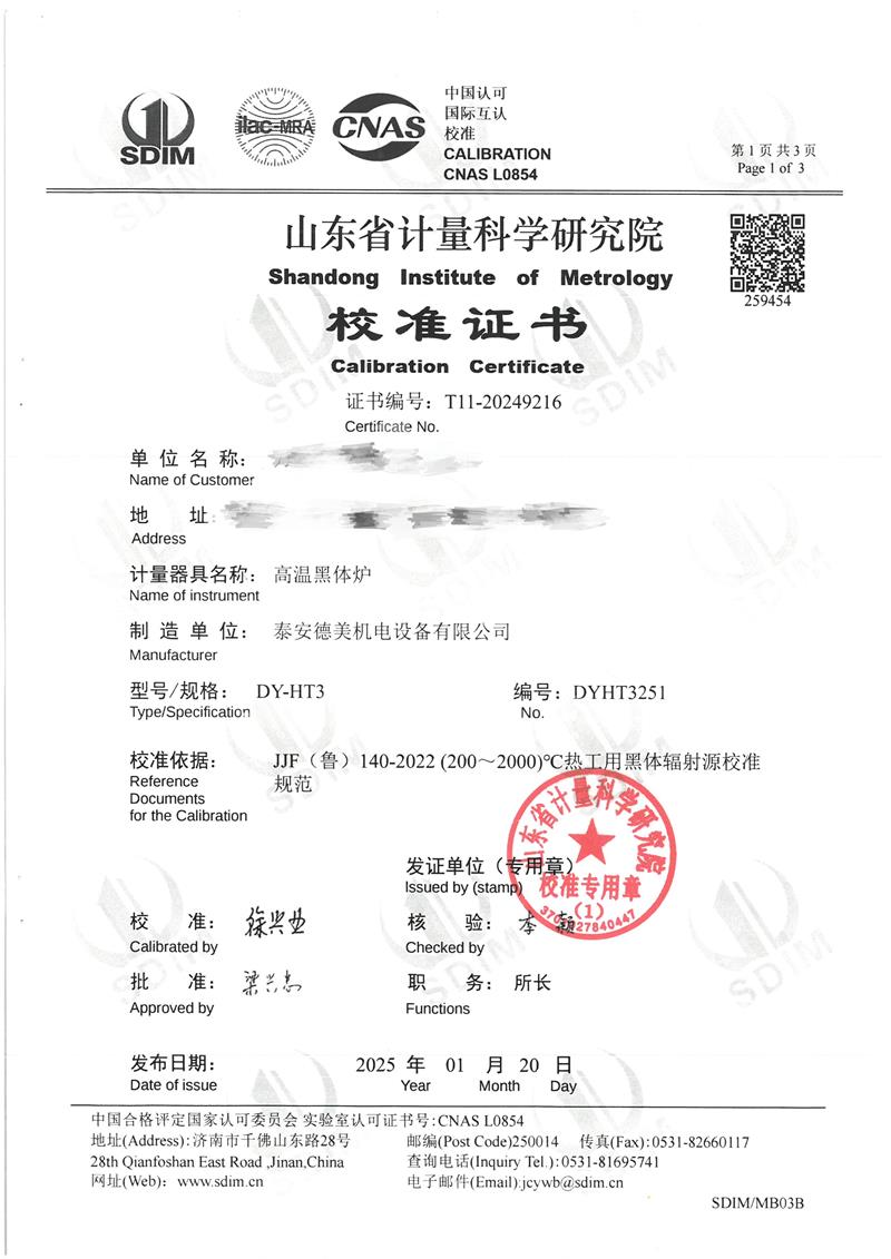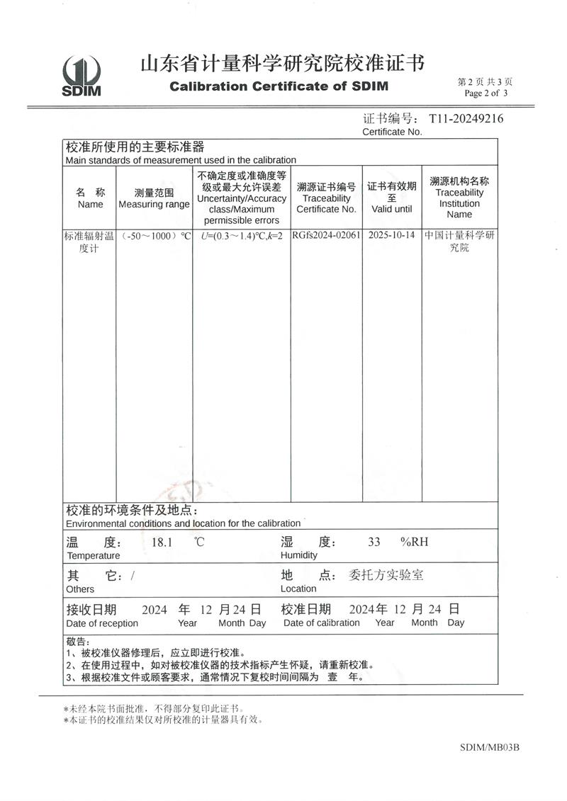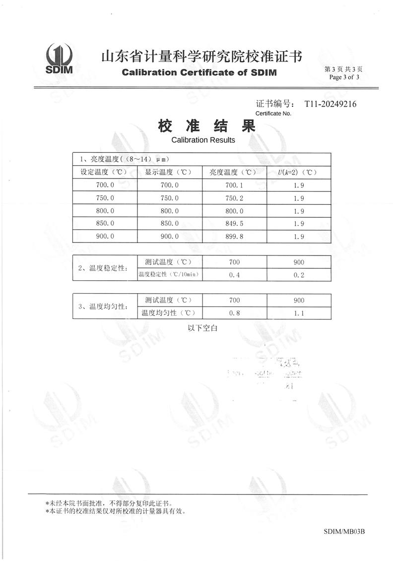 高溫黑體爐(300℃~1200℃)校準證書 2025-1-25 本文被閱讀 7747 次