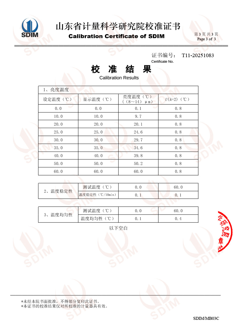 低溫面源黑體爐(0-60℃)校準(zhǔn)證書 2025-7-28 本文被閱讀 3380 次