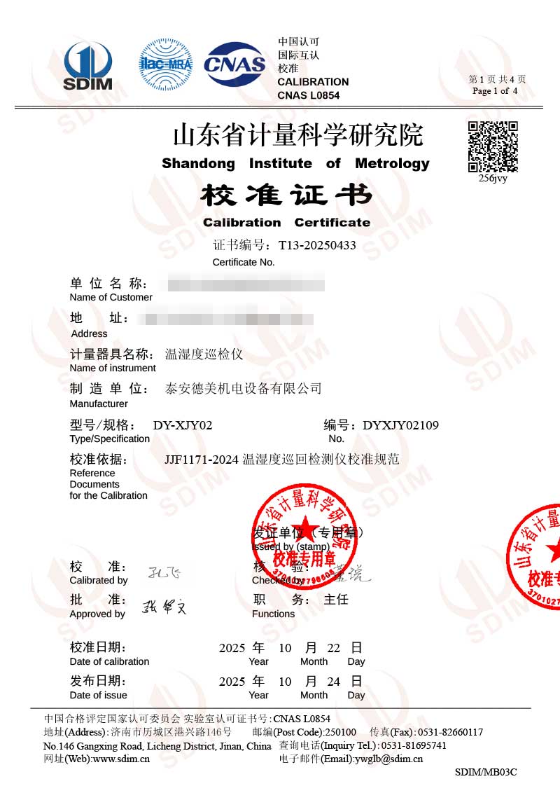 溫濕度巡檢儀校準證書 2025-10-30 本文被閱讀 1896 次