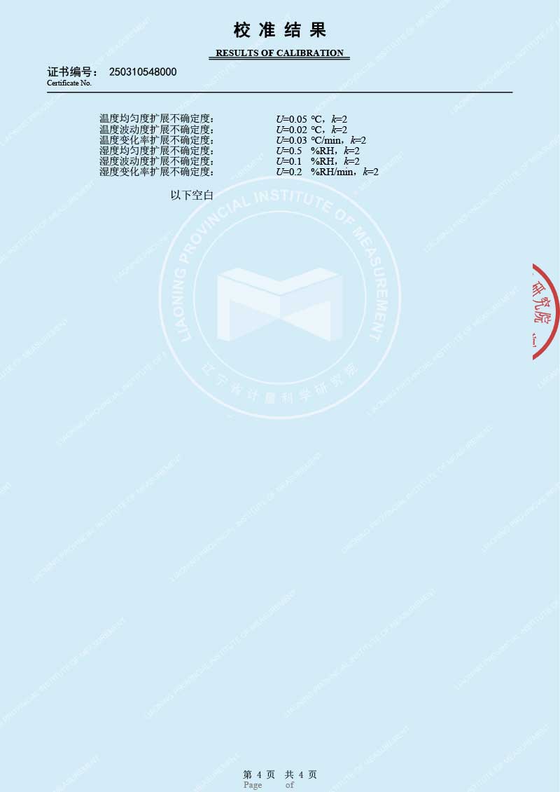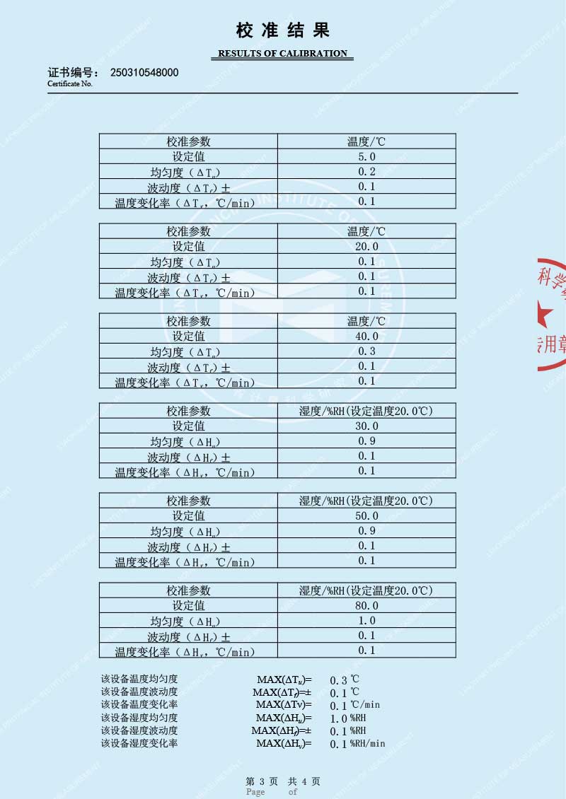 便攜式溫濕度檢定箱(-10-60℃)校準(zhǔn)證書