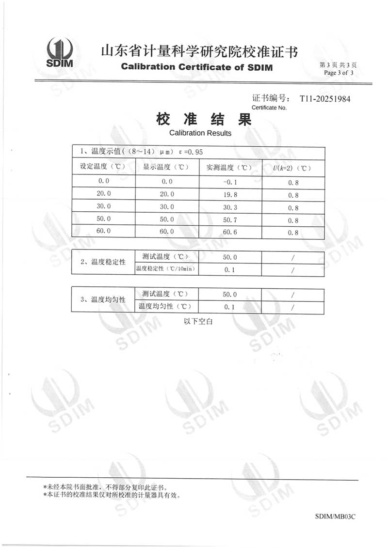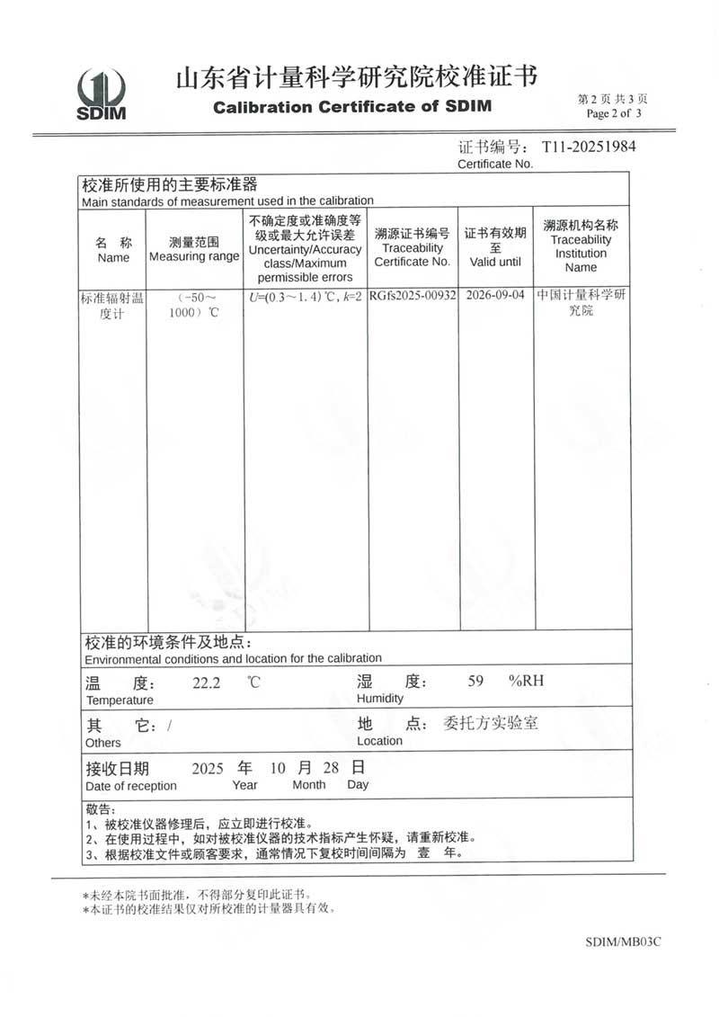 | 上一條:中溫黑體(室溫+5~400℃)校準(zhǔn)證書 | 下一條:DY-HT2M-C高溫面源黑體爐(100mm) |