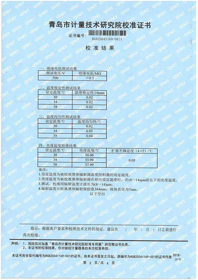 額溫計(jì)黑體空腔校準(zhǔn)證書 2025-11-5 本文被閱讀 1566 次