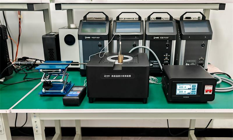 表面?zhèn)鞲衅魍ǔky以校準(zhǔn),這是因?yàn)楹茈y找到一個(gè)平坦,均勻的表面溫度源。表面溫度校準(zhǔn)系統(tǒng)利用特殊合金材料作為表面,光潔度高,可以保證被校準(zhǔn)的傳感器與表面溫度校準(zhǔn)器接觸良好,從而降低校準(zhǔn)不確定度。采用特殊的加熱材質(zhì)和恒溫結(jié)構(gòu),使得表面溫度更加均勻。