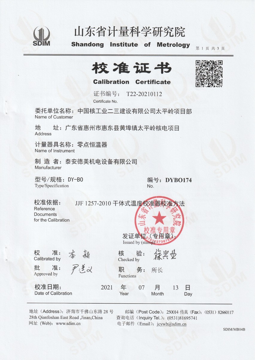 | 上一條:中國核工業(yè)二三建設(shè)有限公司太平嶺項目部-標(biāo)準(zhǔn)鉑銠10-鉑熱電偶 | 下一條:濕度發(fā)生器-校準(zhǔn)證書 |