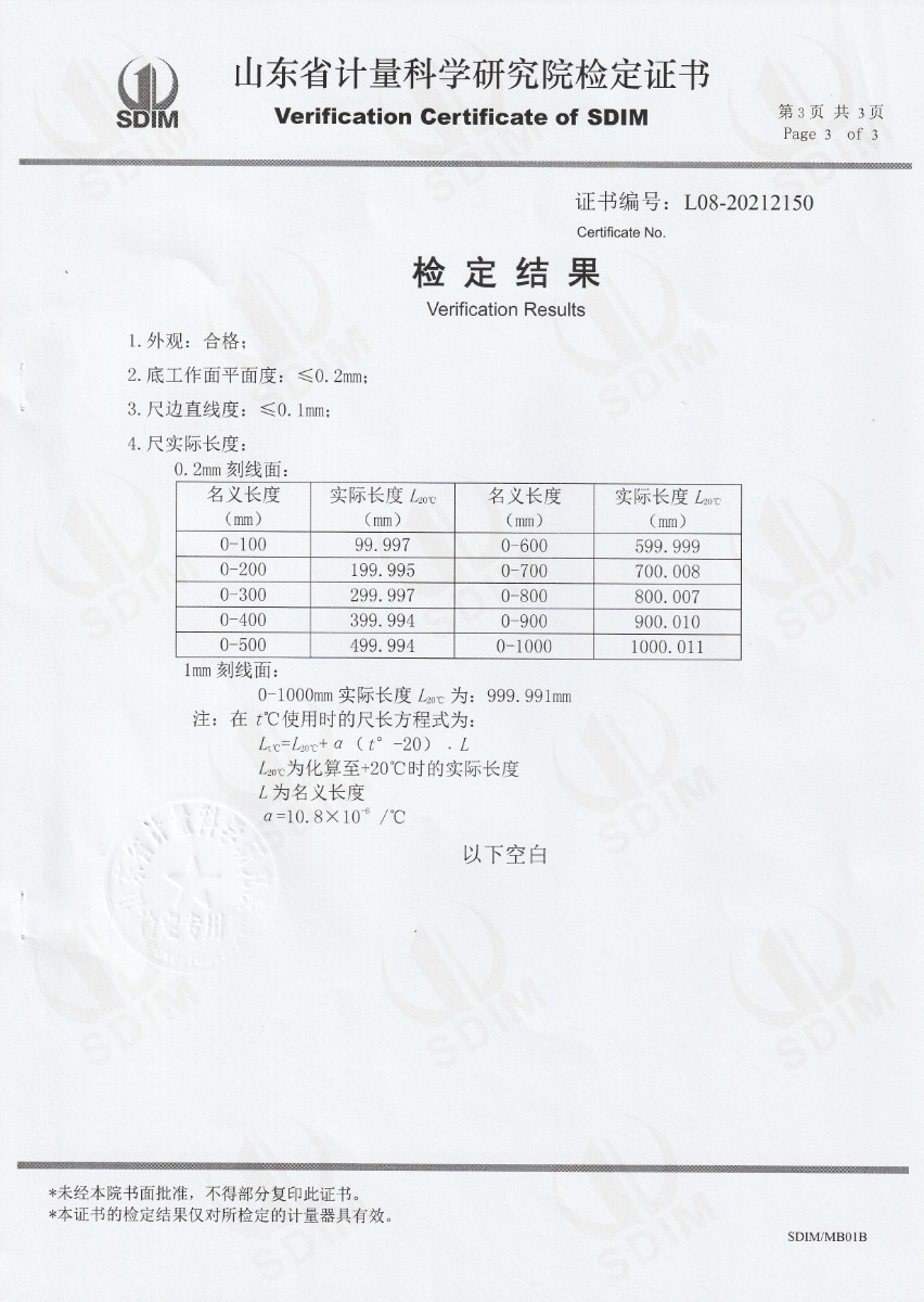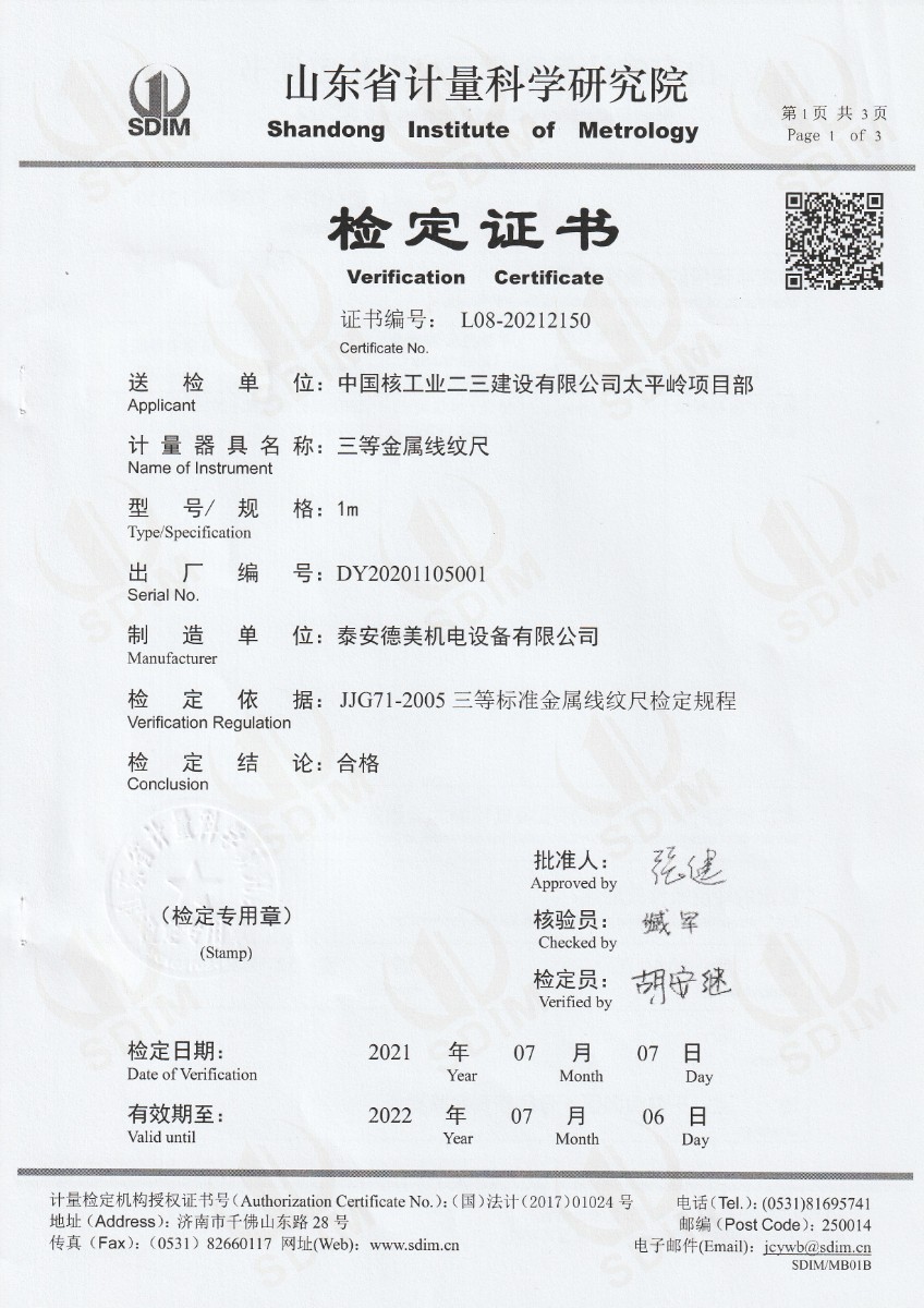 中國核工業(yè)二三建設(shè)有限公司太平嶺項(xiàng)目部-三等金屬線紋尺