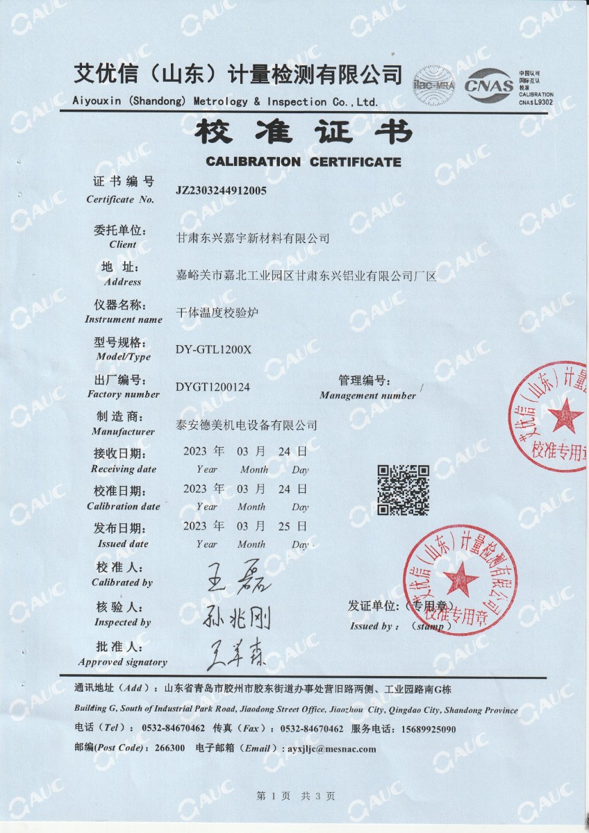 | 上一條:湖南長量檢測股份有限公司 黑體爐 校準(zhǔn)證書 | 下一條:DY-HT2M-C高溫面源黑體爐(100mm) |