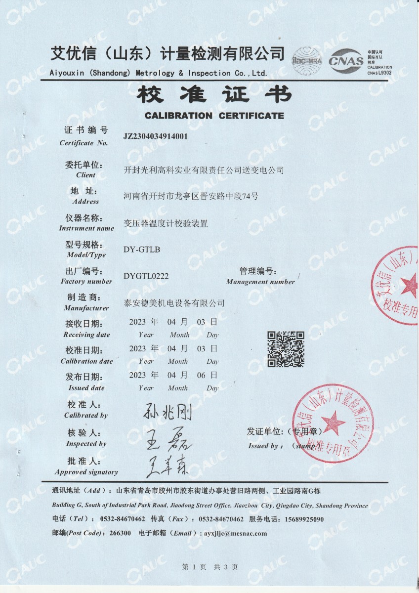 | 上一條:中財(cái)鋰膜(南京)有限公司 中溫干體爐 校準(zhǔn)證書 | 下一條:DY-HT2M-C高溫面源黑體爐(100mm) |