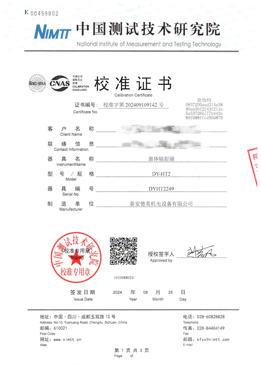 中溫腔式黑體校準(zhǔn)證書 2024-10-21 本文被閱讀 10091 次