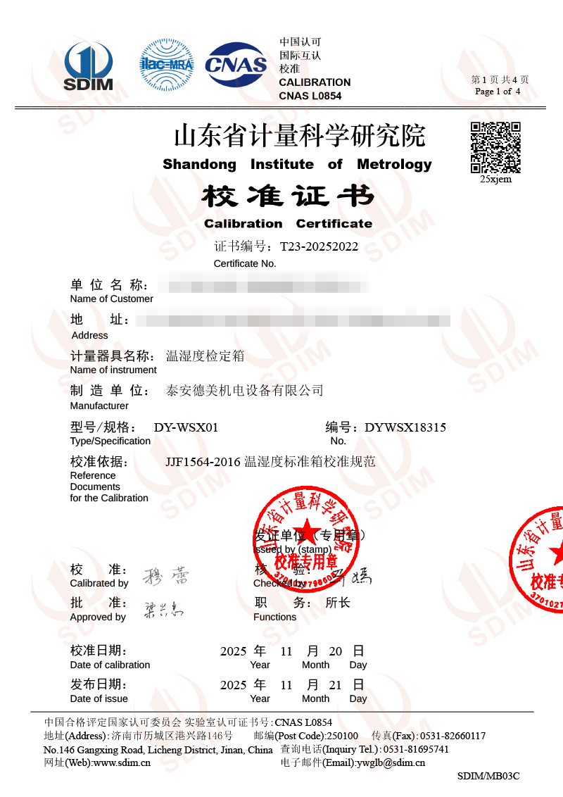 溫濕度檢定箱校準(zhǔn)證書 2025-11-25 本文被閱讀 1839 次